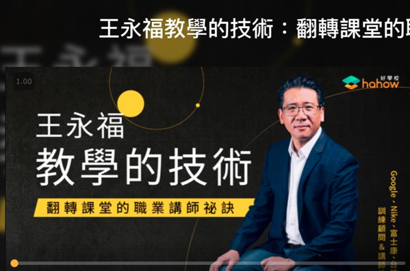 「教学的技术——线上课程」:以三机三镜高规格重现教学现场,推出后即打破平台销售记录,创造超过9000位老师共同学习的台湾最佳教学技巧研习课程。