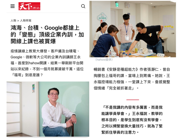 2020「天下杂志」专访:鸿海、台积、Google都抢上的「变态」顶级企业内训,加开线上课也被买爆